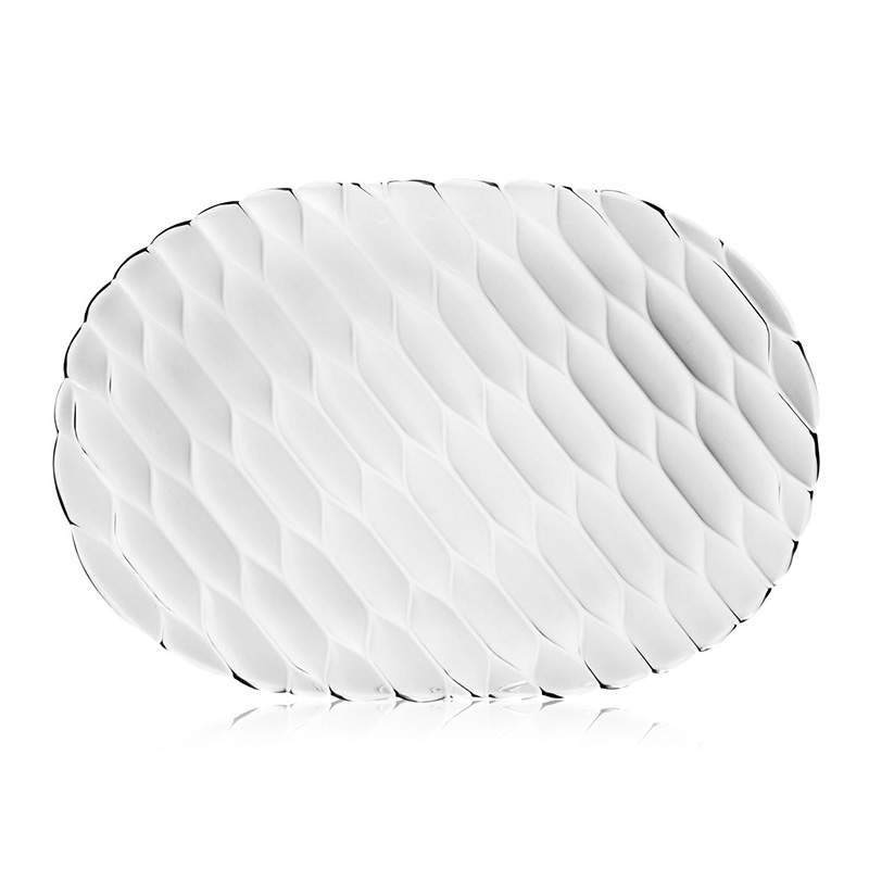 クリスタルガラスやダイヤモンドは、カッティングによって輝きや印象が変わります。このジェリーズも、表面のテクスチャ―デザインへのあくなき研究によって、今までのプラスチック製の食器では考えられなかった、驚きの美しさを実現させました。