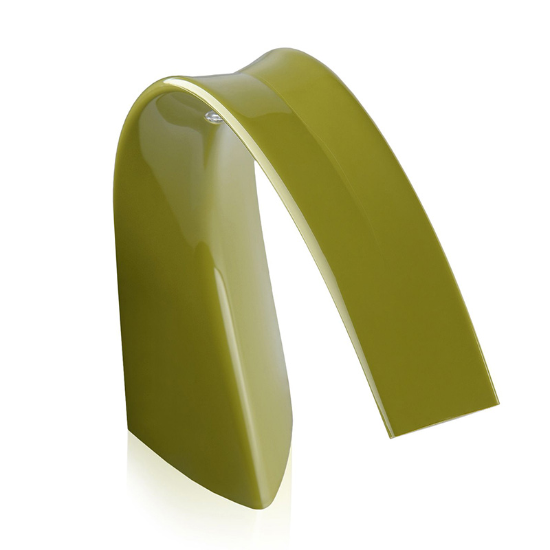 デスクや家具の上にさりげなく佇むタジは、ランプというよりも立体的なサイン、または光を放つ彫刻とでもいうべき存在です。テーブルランプでありながら、いわゆるランプにつきものの機械的で関節のある形状を逸脱して、本来の機能を実際的に発揮するシンプルな形を見つけました。コンパクトなので、小回りが利き、実用的な照明です。