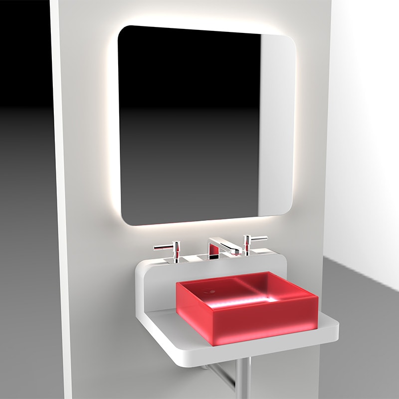 NOタッチセンサー側はセンサーを作動させるため壁やミラーを隣接する際には離隔距離15cm以上とって下さい。