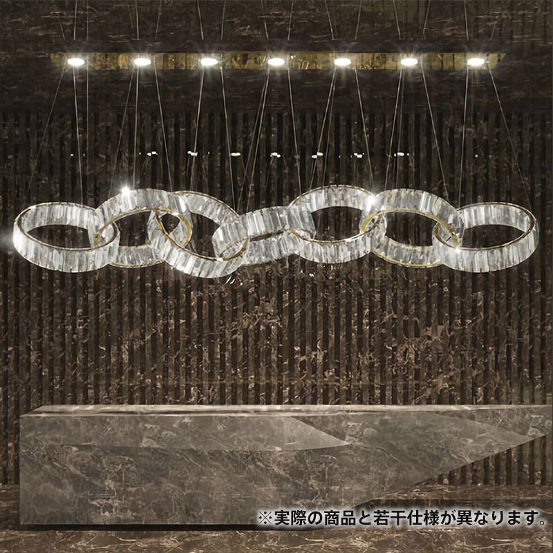 クリスタルガラスのリングが数珠つなぎになったユニークな照明。