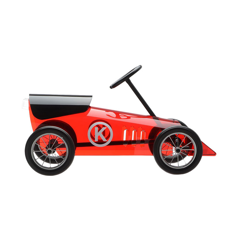 アクリル樹脂と金属構造を融合した、ピエロ・リッソーニ デザインによる車の玩具。