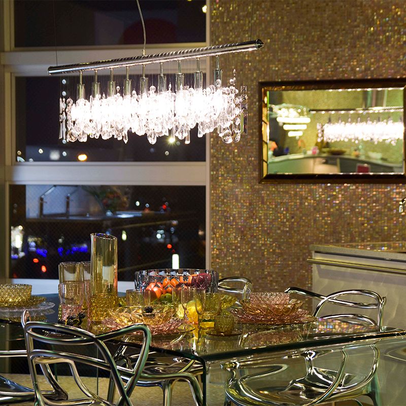 125cmのロングなメタルバーにクリスタルガラスが重なりあうように贅沢に配置されています。
