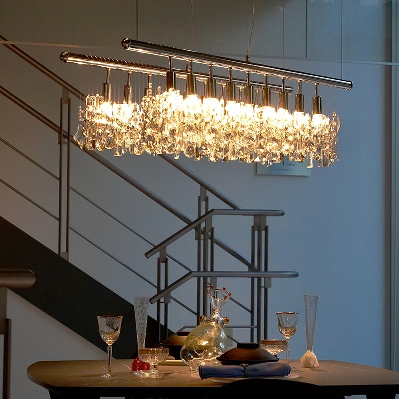125cmのロングなメタルバーにクリスタルガラスが重なりあうように贅沢に配置されています。