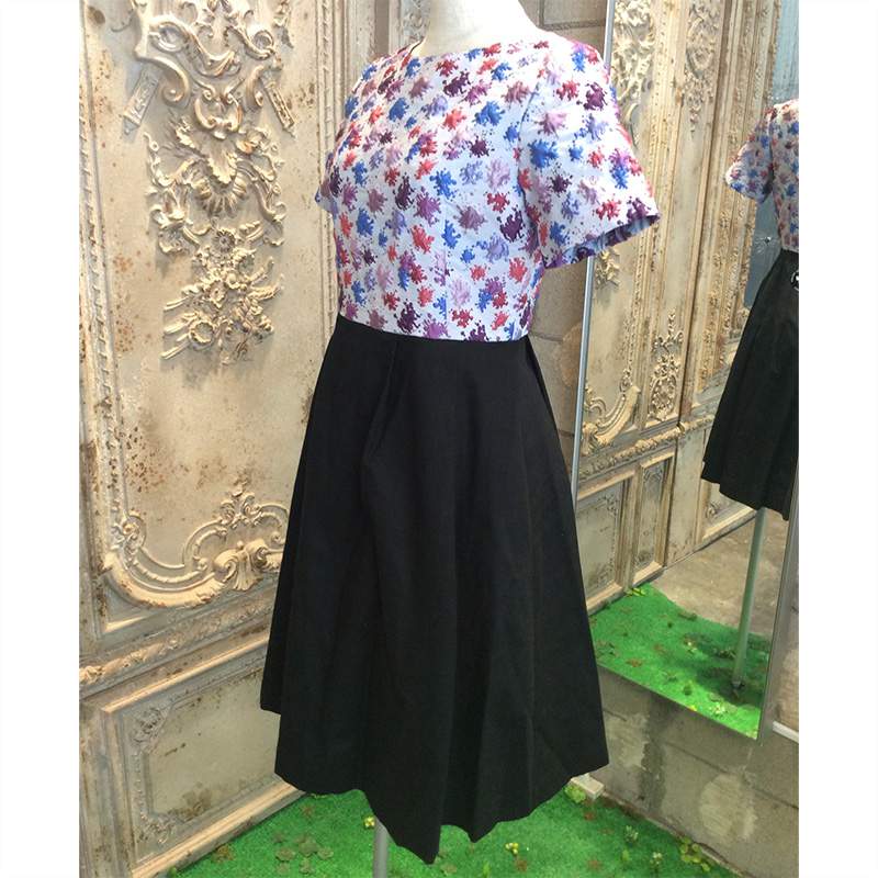 絵の具のパレットのような鮮やかな柄物のフクレ織り素材が特徴のコンビネーションワンピースです。