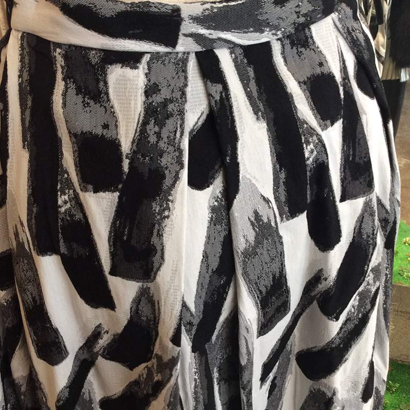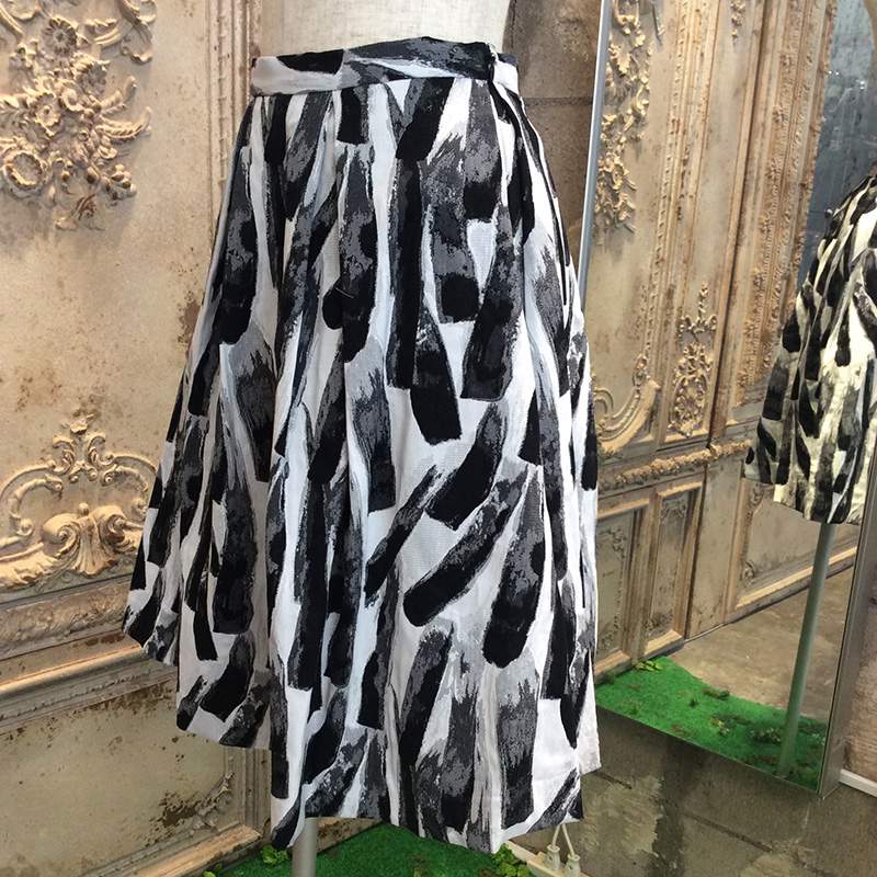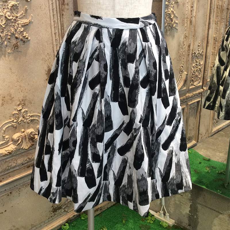 木炭の柄をジャカードで大胆にあしらったスカートです。
