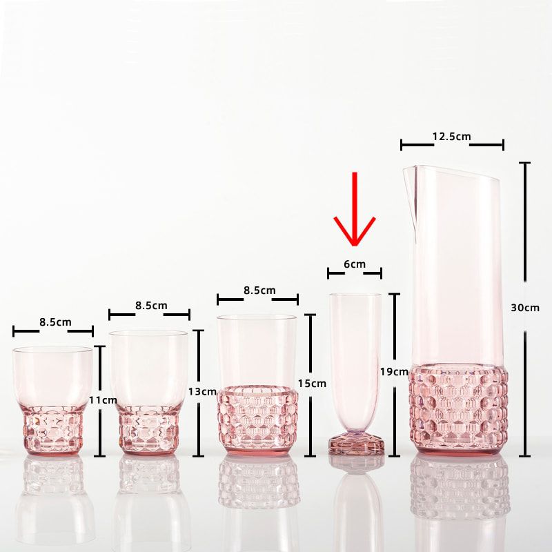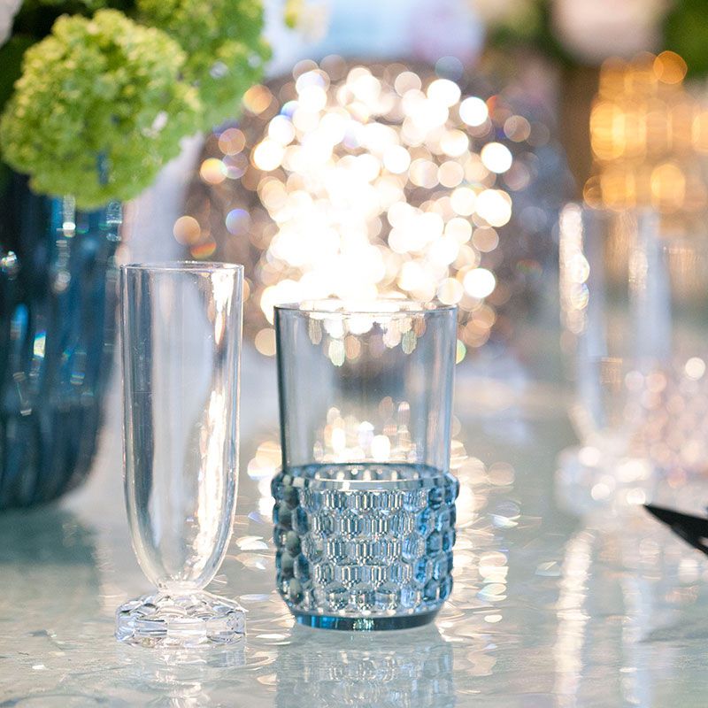 クリスタルガラスやダイヤモンドは、カッティングによって輝きや印象が変わります。このジェリーズも、表面のテクスチャ―デザインへのあくなき研究によって、今までのプラスチック製の食器では考えられなかった、驚きの美しさを実現させました。