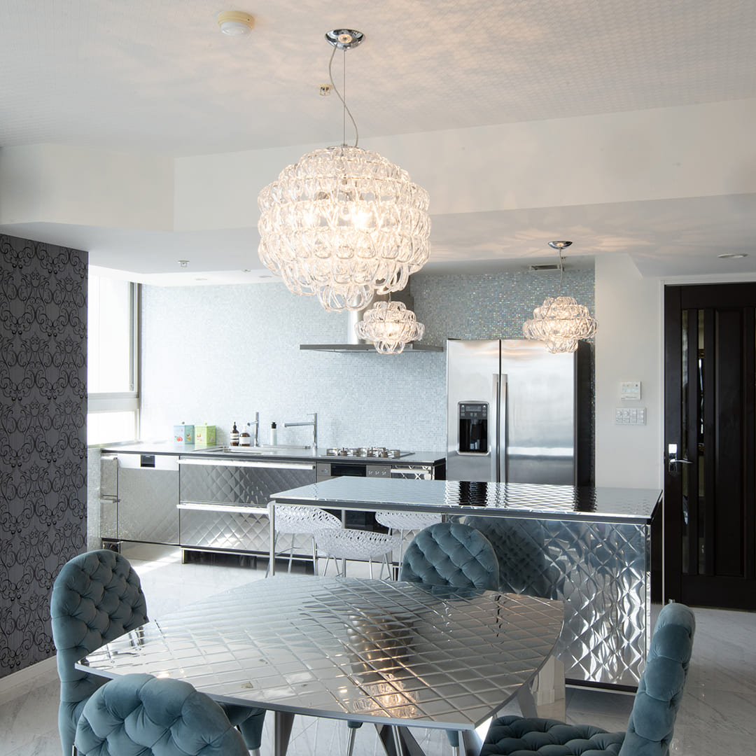 360度どこから見ても美しい、ガラスと光だけのシャンデリア