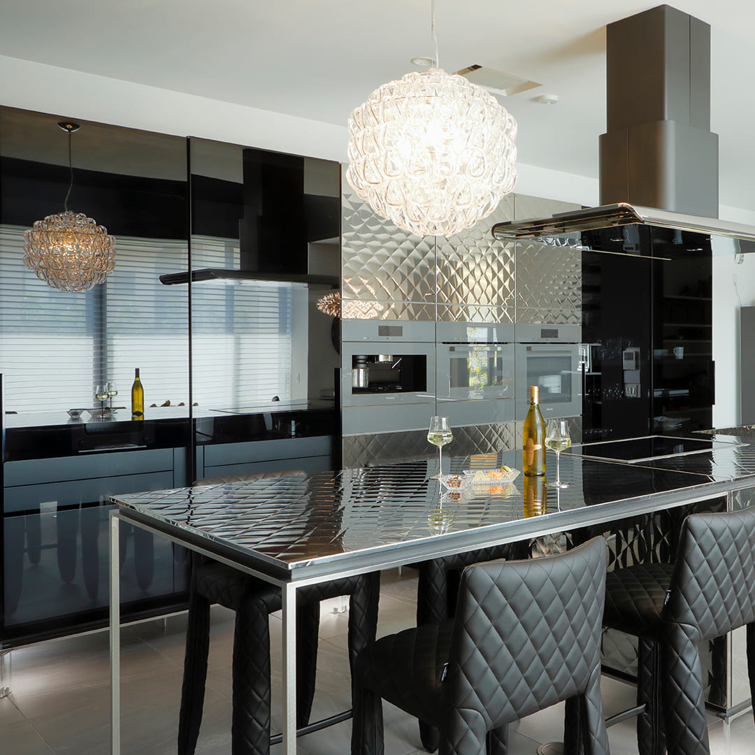 「同じ形状のガラスパーツを組み合わせる」という合理的なシステムにより、ハンドメイドながら安定した品質を実現。メンテナンス性にも優れています。
