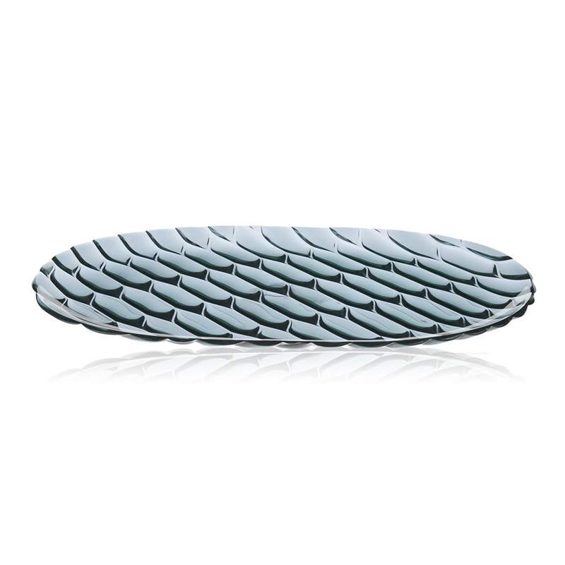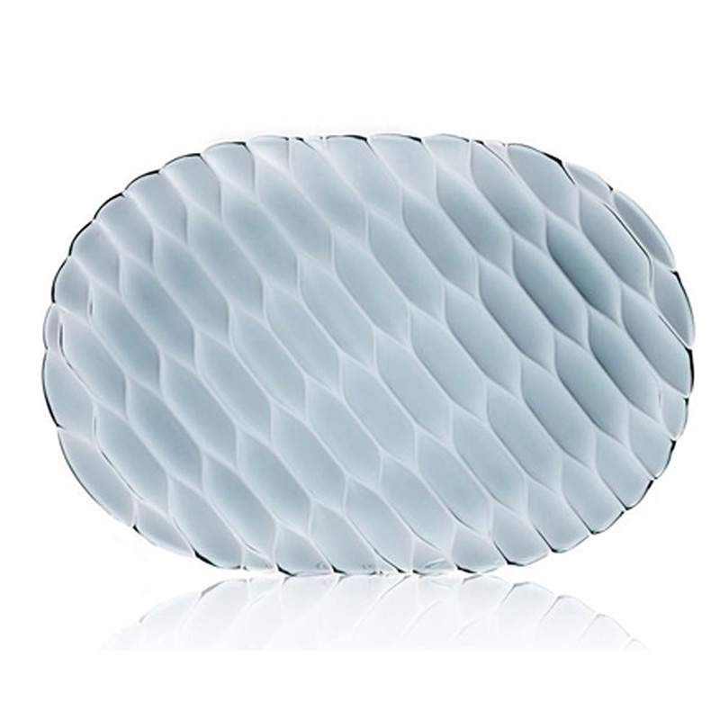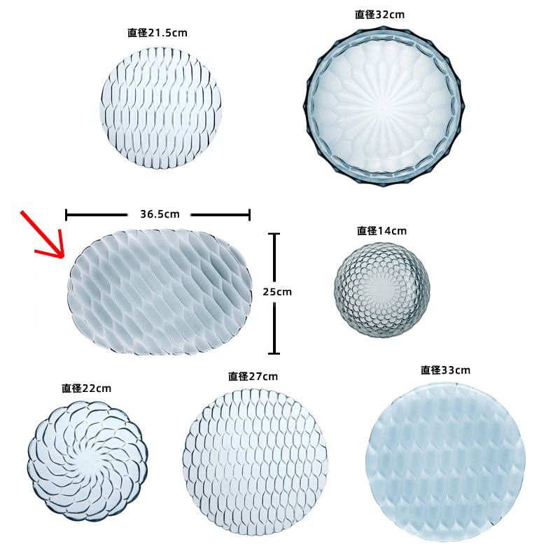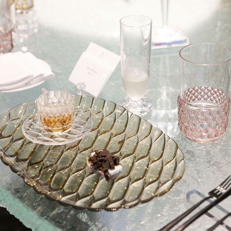 クリスタルガラスやダイヤモンドは、カッティングによって輝きや印象が変わります。このジェリーズも、表面のテクスチャ―デザインへのあくなき研究によって、今までのプラスチック製の食器では考えられなかった、驚きの美しさを実現させました。