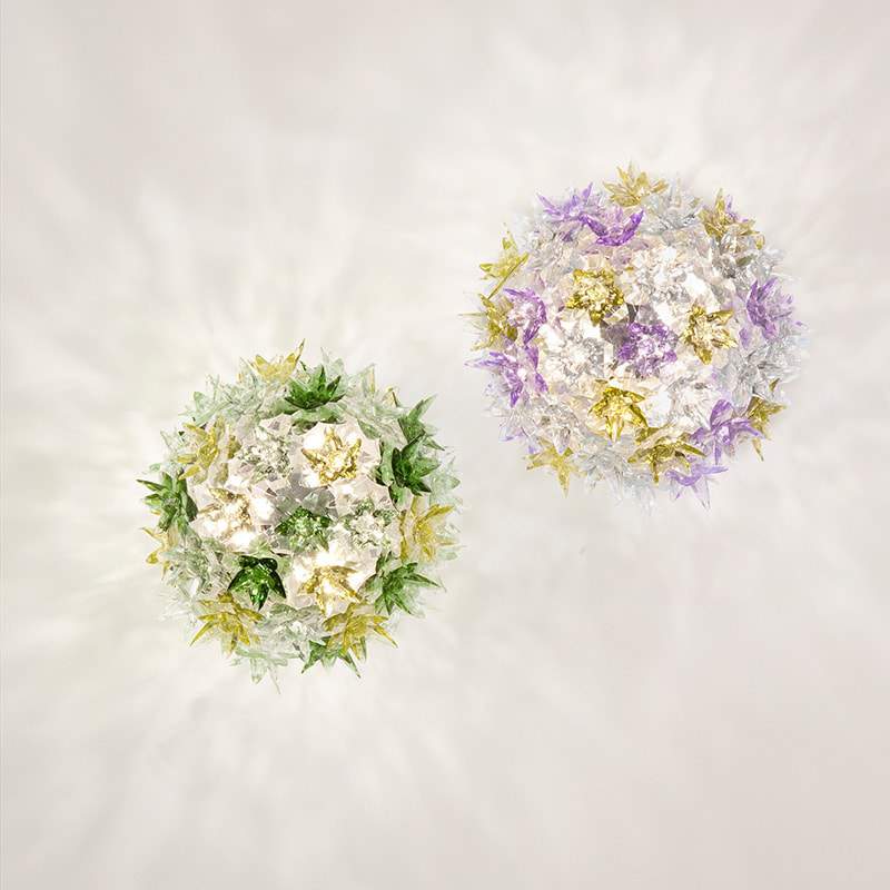 花型のオーナメントを通して光が複雑に屈折し、数え切れないほどの輝きを放ちます。
