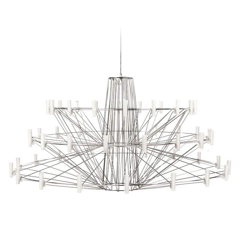 軸を中心に放射状に伸びるアーム、その先端で灯る光源。クラシックなシャンデリアの定義をなぞりつつ、そのすべてが新しく再定義されています。