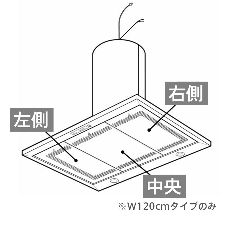 このページの商品は幅120cm用のグリスフィルター左側タイプです。