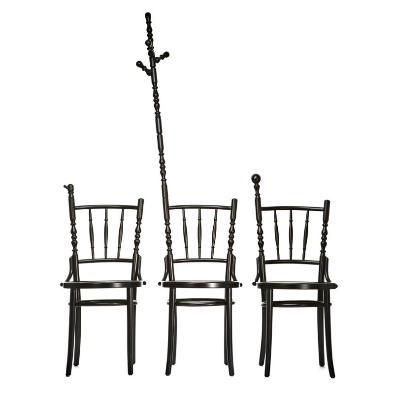 チェアというのは座る以外にも、背もたれにコートをやバッグを掛けてしまうもの。そんな自然に行なってきた行為を明確にデザインしました。