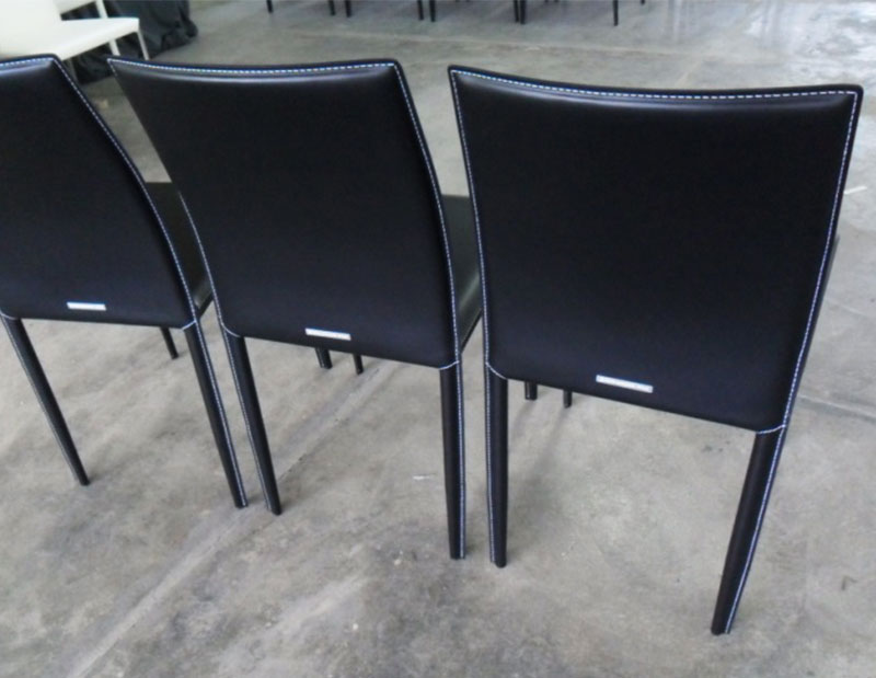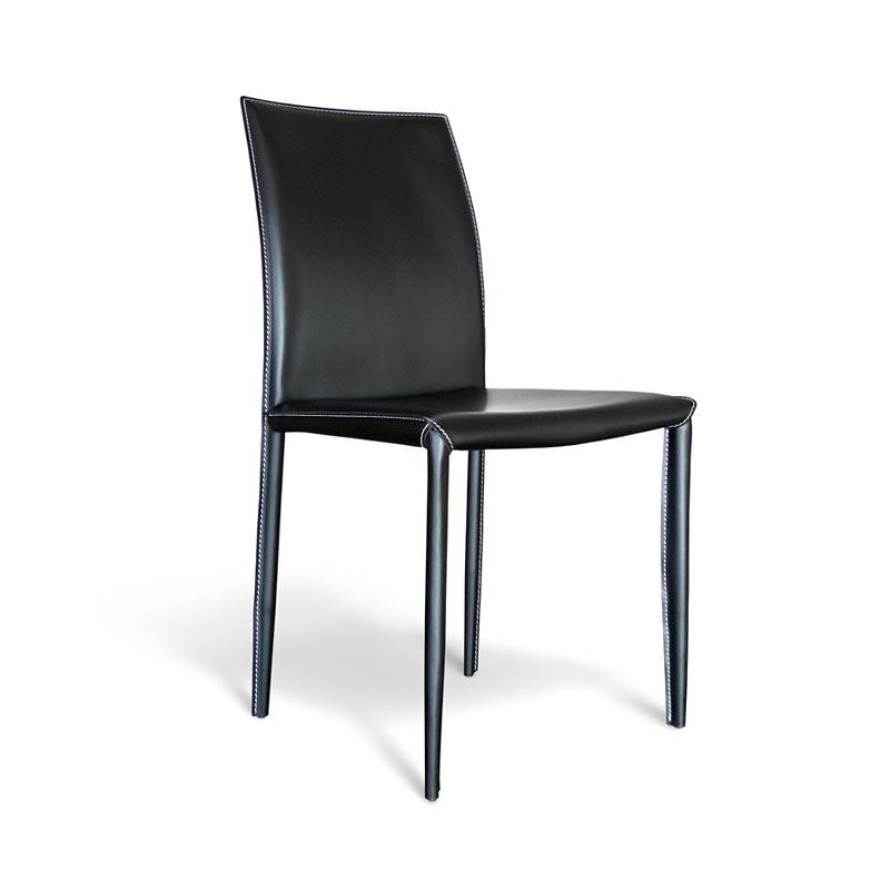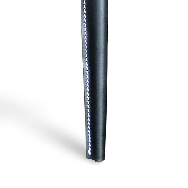 落ち着いた艶のあるブラックカラーにホワイトのステッチラインがデザインのアクセントとなり、上質なインテリア空間にふさわしい風格をもっています。
