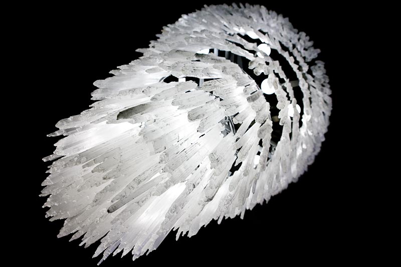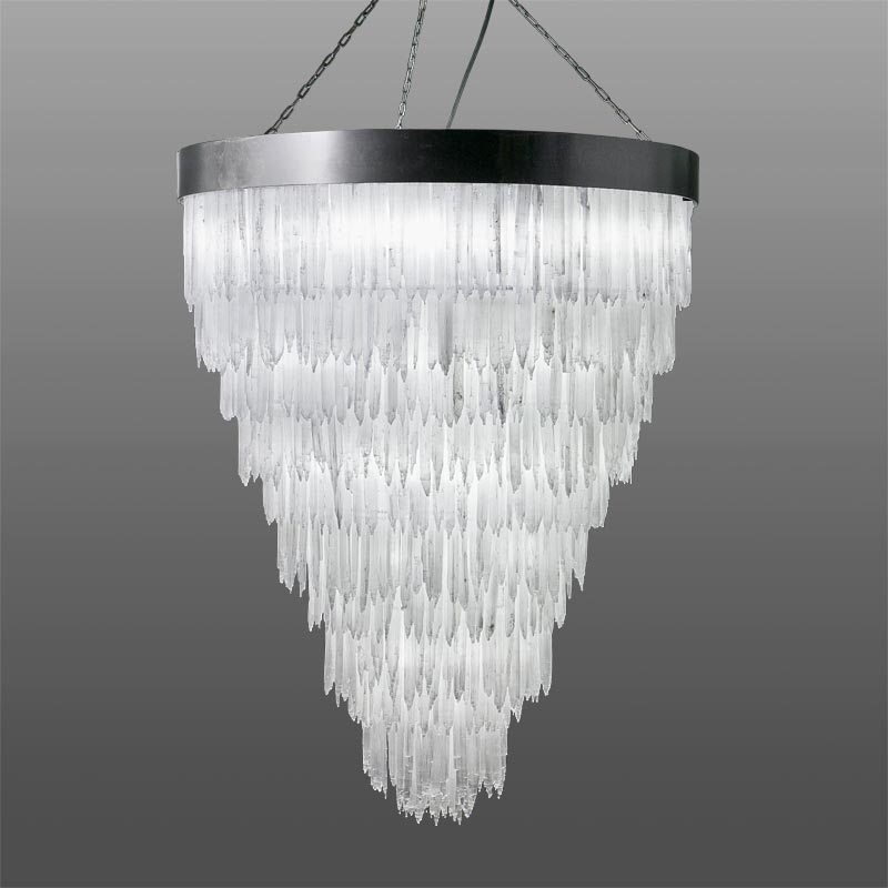 天然石のセレナイトをオーナメントにした重厚なシャンデリア