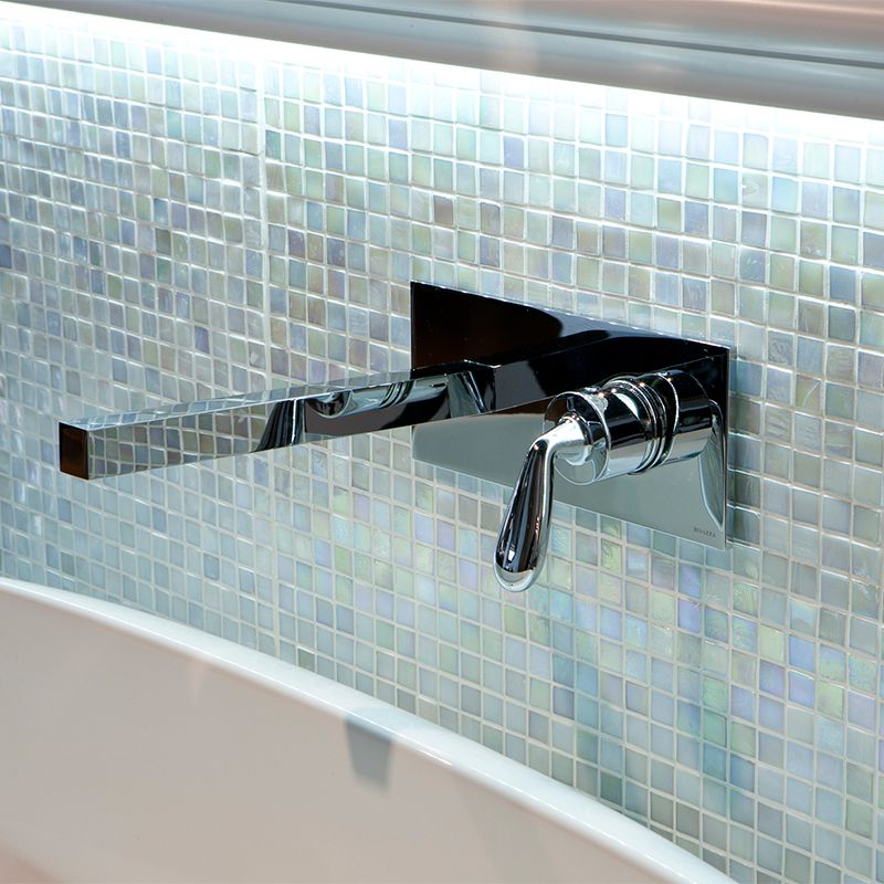 Bisazzaの典型的なピクセルモザイクのタイル形状に基づいた、水栓やミラーの「アーキテクチュラルシリーズ」