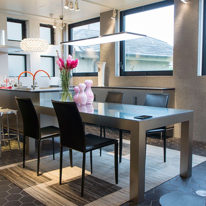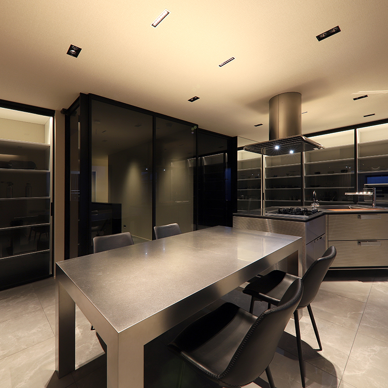 銀嶺ステンレスには、キッチンと並べた時の自然なつながり、インテリアとキッチンの統一感を大事にしデザインされました。