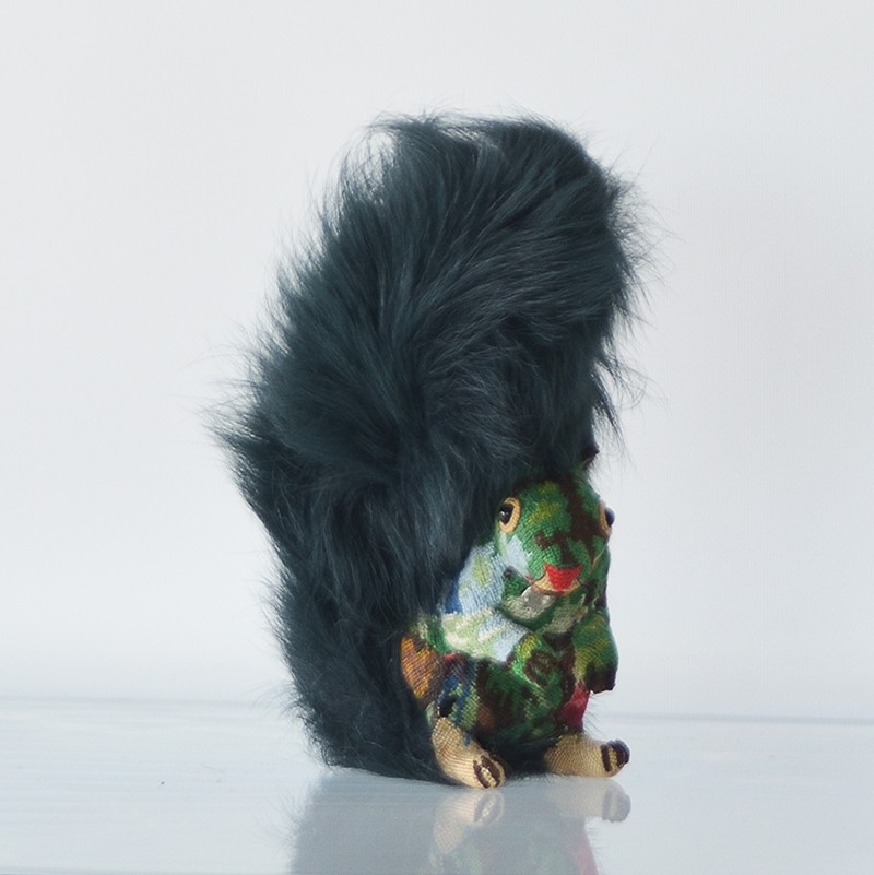 キャンパス生地全体をウールの糸で刺繍を施す技法。仕上がりはまるで織物のような印象で、ウール糸を使用することから、タペストリーとして装飾として用いるだけでなく。室内の温度調整の役割も果たす実用性も兼ね備えています。
