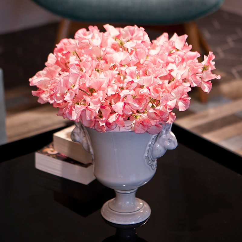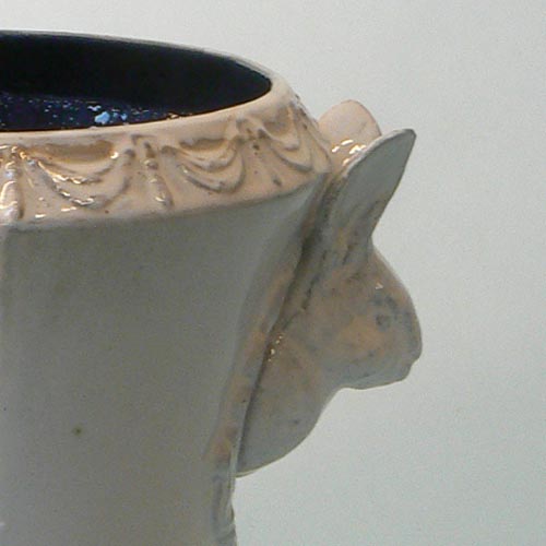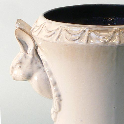 シャビーシックなアンティークの風合いが可愛らしいフラワーべース。左右の持ち手になったウサギの顔が愛くるしく、草花を飾れば草原から顔を覗かせる野ウサギのよう。
