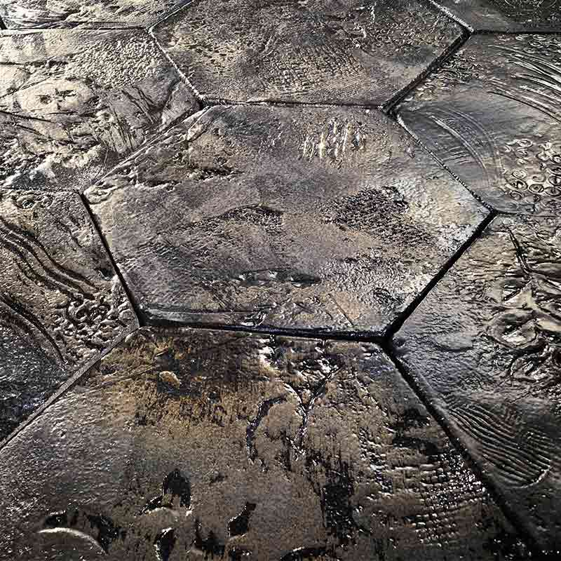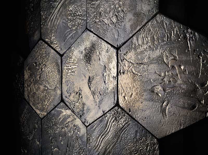 六角のデザインと日本の楽焼にヒントを得たデザインタイル