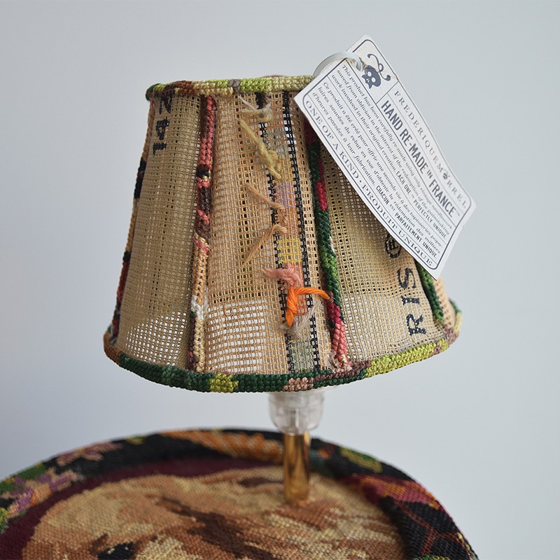 『FREDERIQUE MORREL(フレデリック・モレル)』は、亡くなった祖母のニードルワーク(針仕事)への想いから誕生しました。すべてニードルポイント刺繍(※注)のハンドメ イドで手掛けており、刺繍の色や柄は、世界中探しても同じものは他にない全てが1点ものの作品です。 フレデリック・モレルの作品それぞれには、深い意味とメッセージが込められており、例えば、刺繍で扉を描けば「人生の半分を通り過ぎた 」という意味が込められていたり、別の作品では愛と求愛がテーマだったり。避けては通れない人類と自然の関わりや、人間や動物にとっての幸福について追及 し、作品を通して「伝えたいメッセージを表現する」という、あたらしい創造に挑戦し続けました。