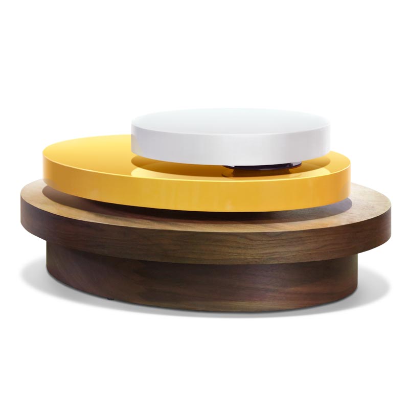3段に積み重なったユニークなローテーブル。1段目と2段目は360度回転するので、使う場所にあわせてカタチを機能的に変えることができます。デザインもキャッチーでカワイらしい。インテリアとしての魅力が満載です。