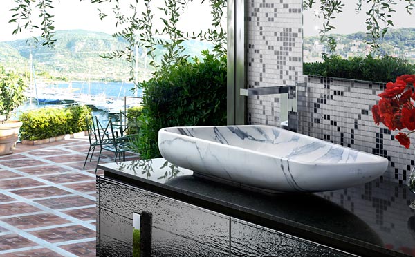 イタリア産大理石をくり抜いた彫刻。