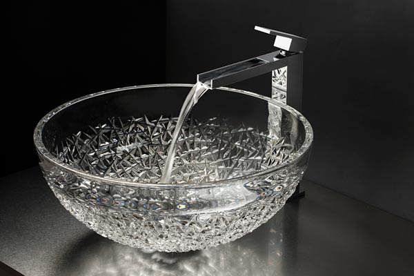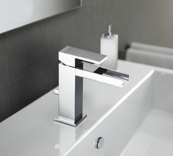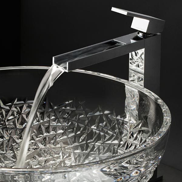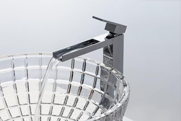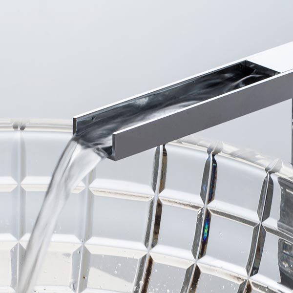 ノブを静かに持ち上げると、クロームの奥からキラキラと輝く水流が現れ静かに流れ落ちていきます。