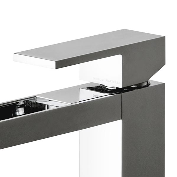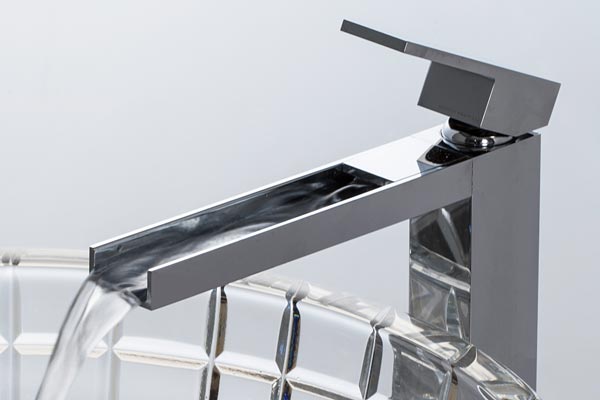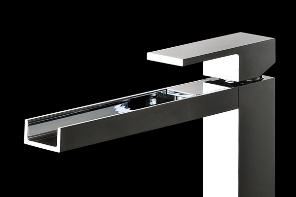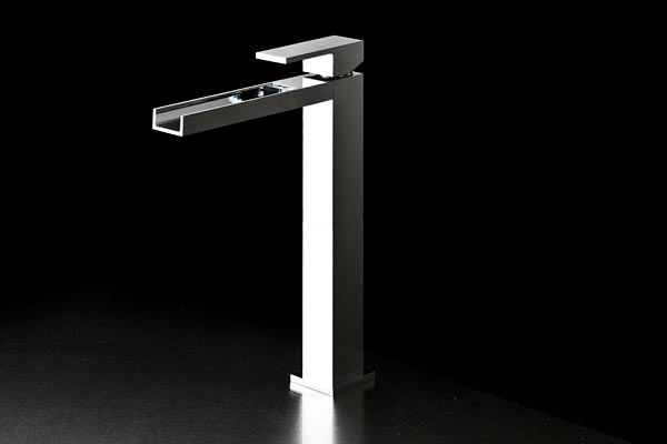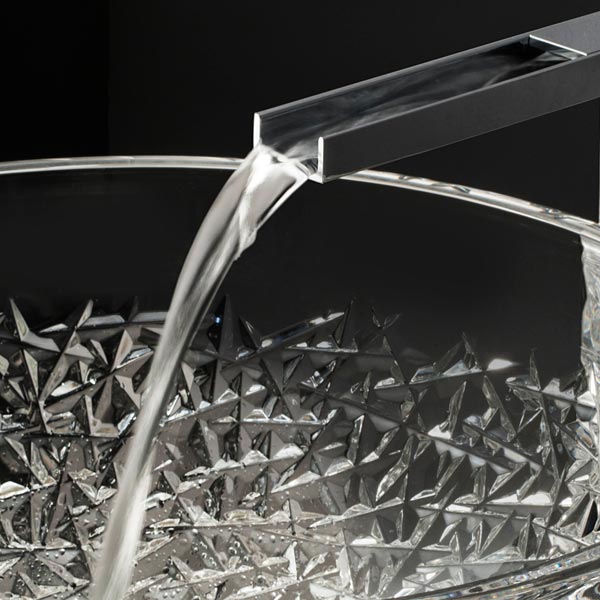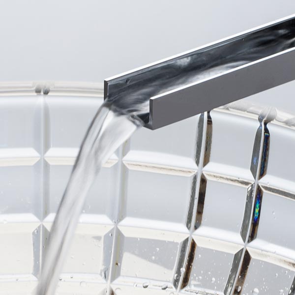 ノブを静かに持ち上げると、クロームの奥からキラキラと輝く水流が現れ静かに流れ落ちていきます。