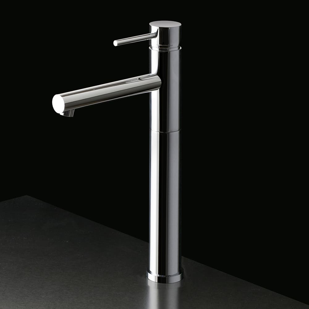 レバーを上に持ち上げることで水流を調整し、左右に回すことで水と湯の切り替えを行います。