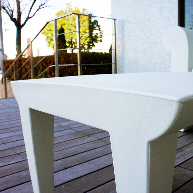 耐候性に優れた素材が使用されているため、ガーデン、プールサイド、テラス用テーブルとして最適です。同色仕上げのソファ、アームチェアも取り揃えています。