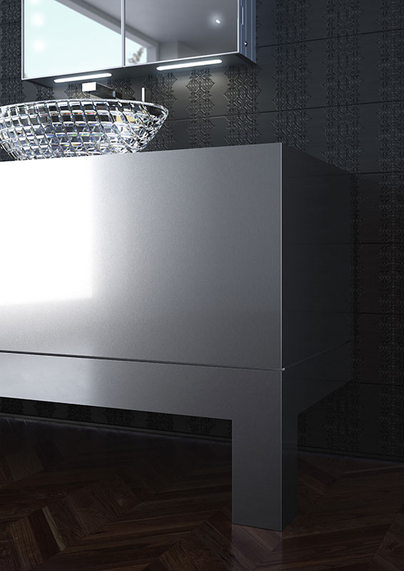 銀白に輝く洗面ユニットは、トーヨーキッチンスタイルのクオリティを証明する完璧なプロポーションです。
