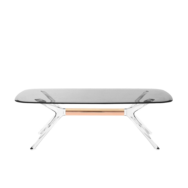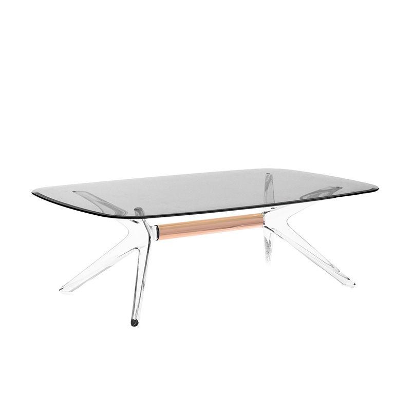 透明なガラストップとポリカーボネートの脚が組み合せらせたローテーブル。トップにはカラーバリエーションがあり、美しい透明なカラーレイヤーを楽しむこともできます。