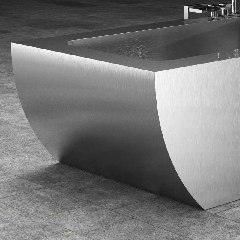 トーヨーキッチンスタイルは、一枚の鋼を折り曲げ、溶接し、叩き、そして究極的に美しく磨き上げて、今までにない価値あるバスタブを完成させました。