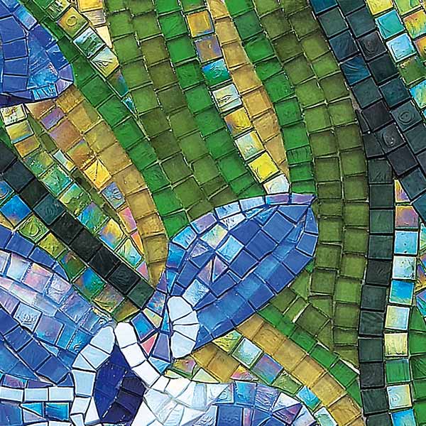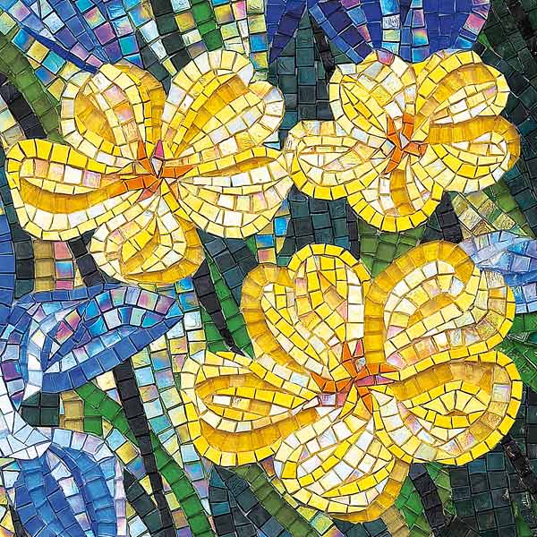 イタリア、ラヴェンナのモザイク職人が、すべてモザイクのハンドワークによって描いた美しい花々です。べネツィアンガラスの鮮やかな色彩によって表現された花たちは、透明感のある煌びやかさをもっています。熟練した職人が絵柄に合わせ、ベネツィアンモザイクを1枚1枚手割りして繊細に描いたモザイクアートです。