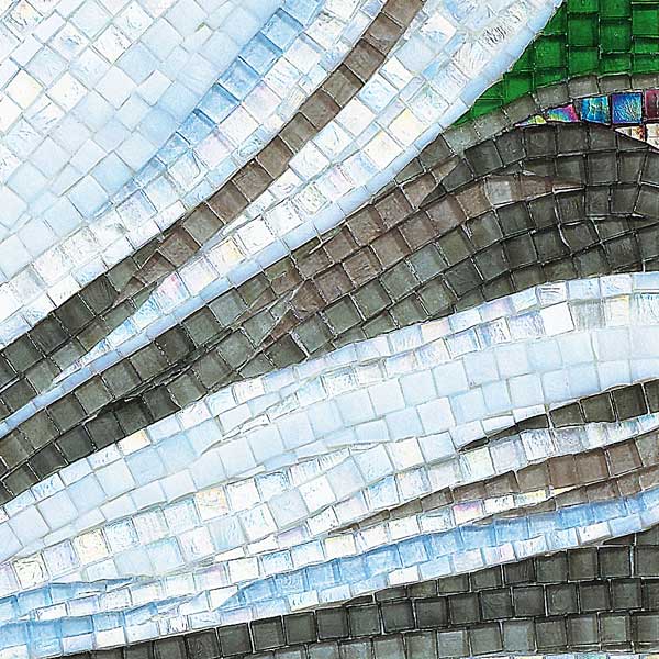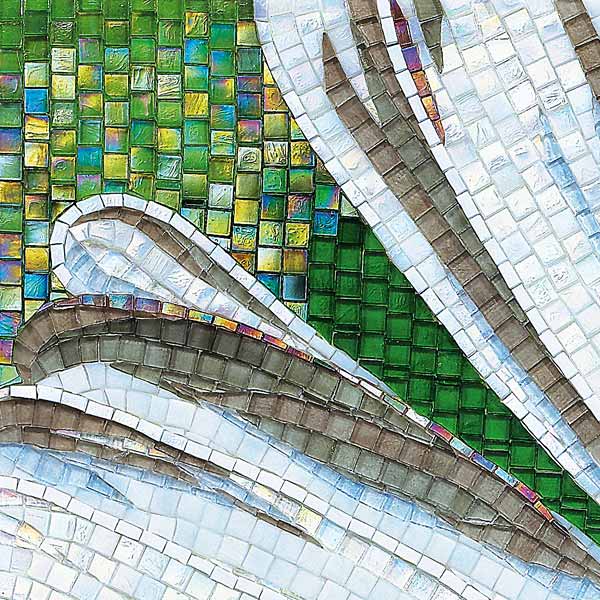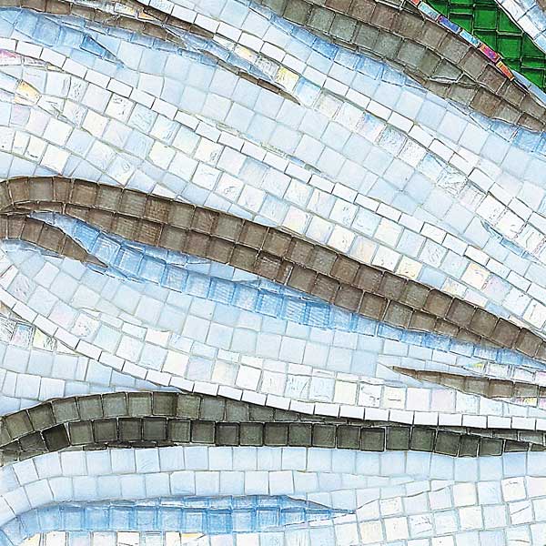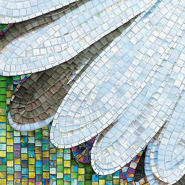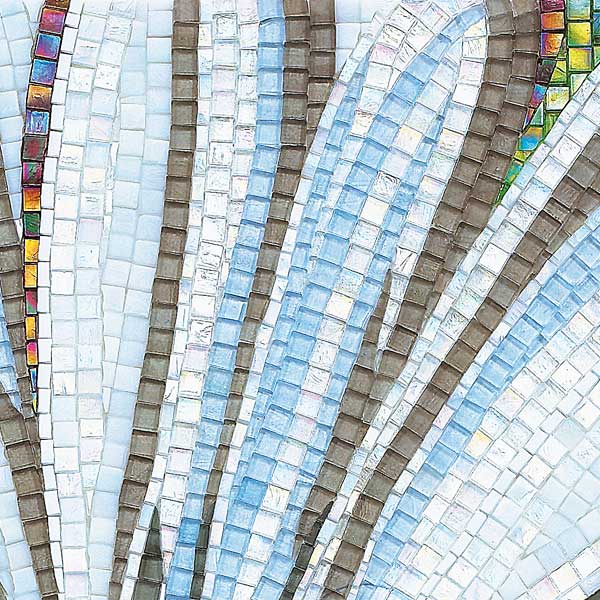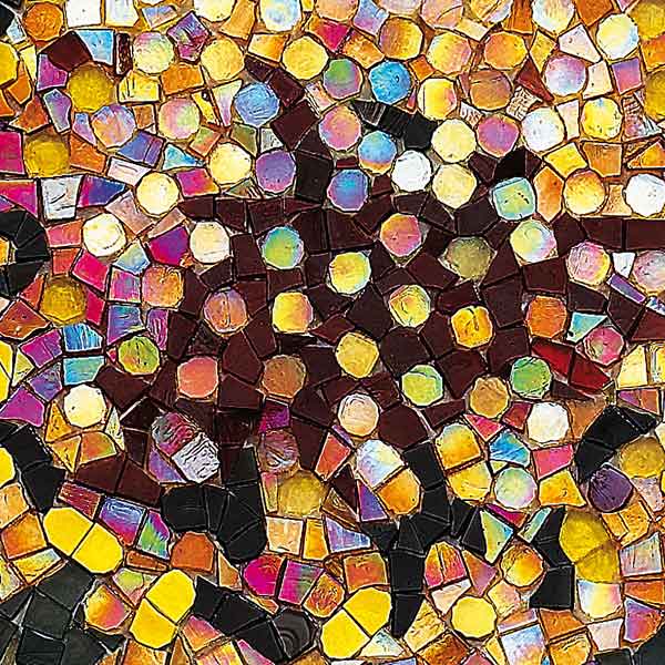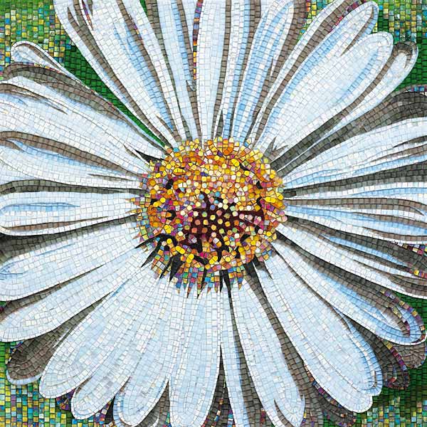 イタリア、ラヴェンナのモザイク職人が、すべてモザイクのハンドワークによって描いた美しい花々です。べネツィアンガラスの鮮やかな色彩によって表現された花たちは、透明感のある煌びやかさをもっています。熟練した職人が絵柄に合わせ、ベネツィアンモザイクを1枚1枚手割りして繊細に描いたモザイクアートです。