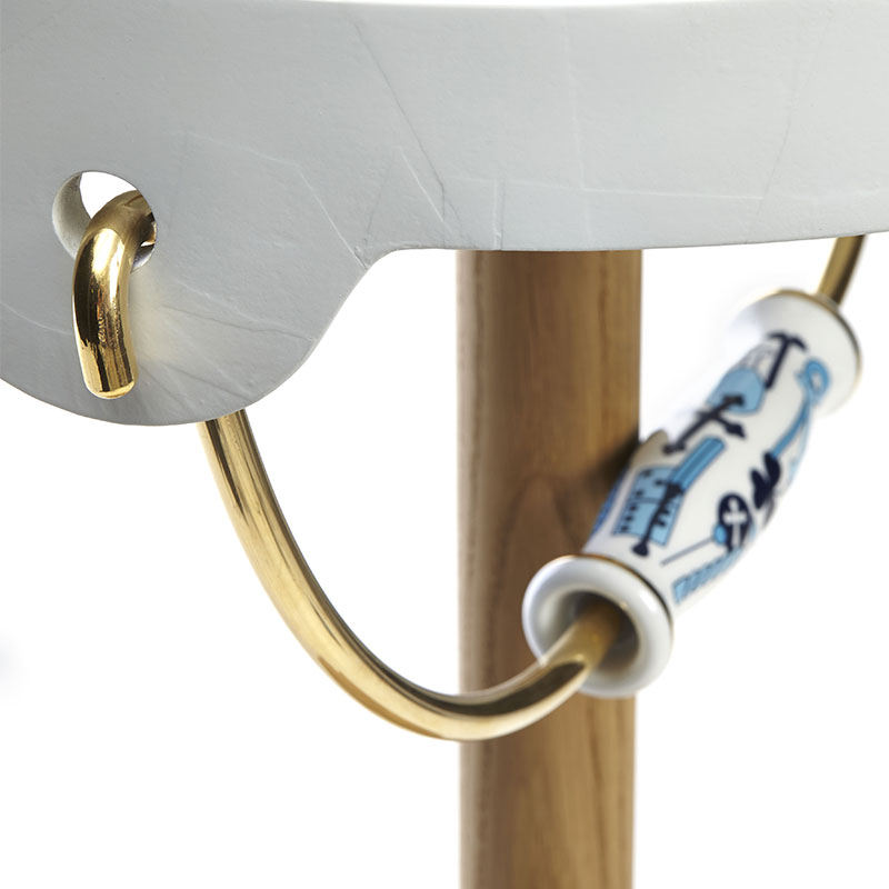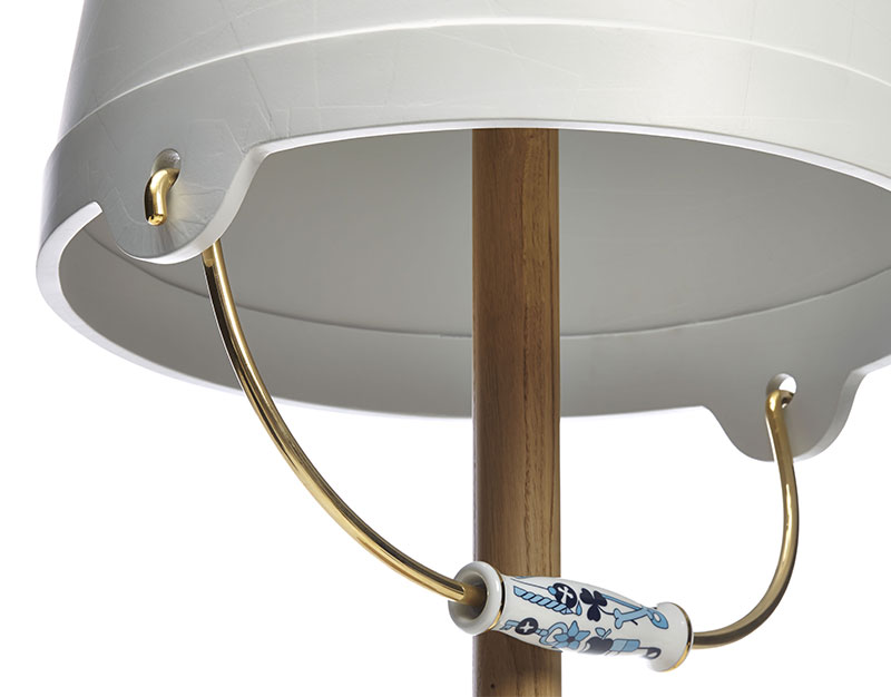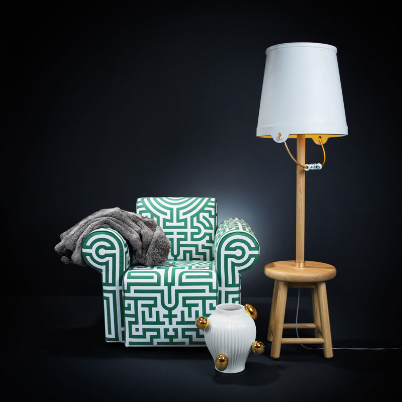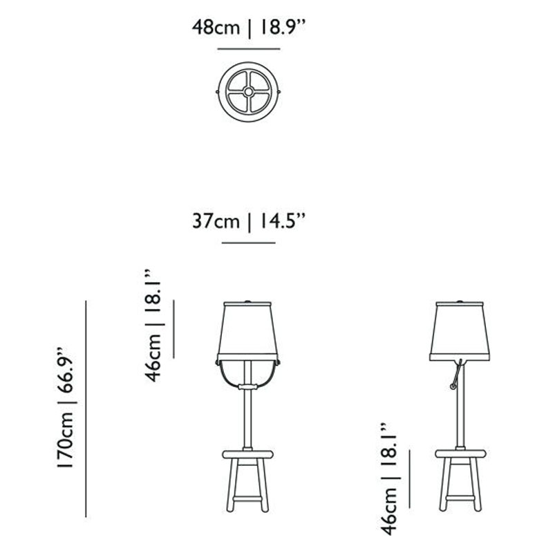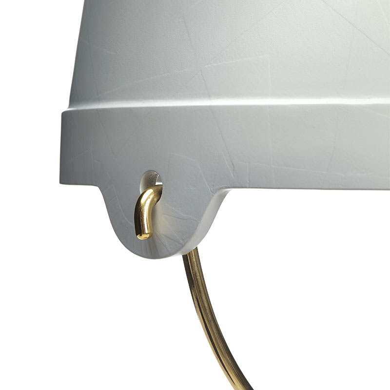 スタジオヨブがつくったこのフロア照明は、実用的に使えるバケツという道具をデザインとして使い、照明という機能的な道具にモノを置けるという実用性を加えました。