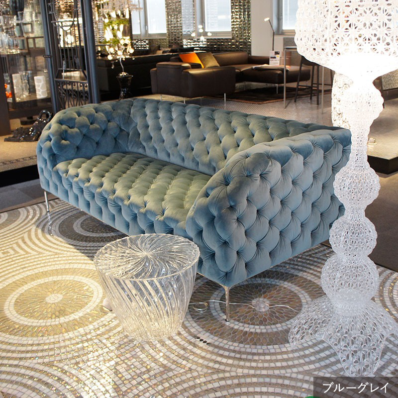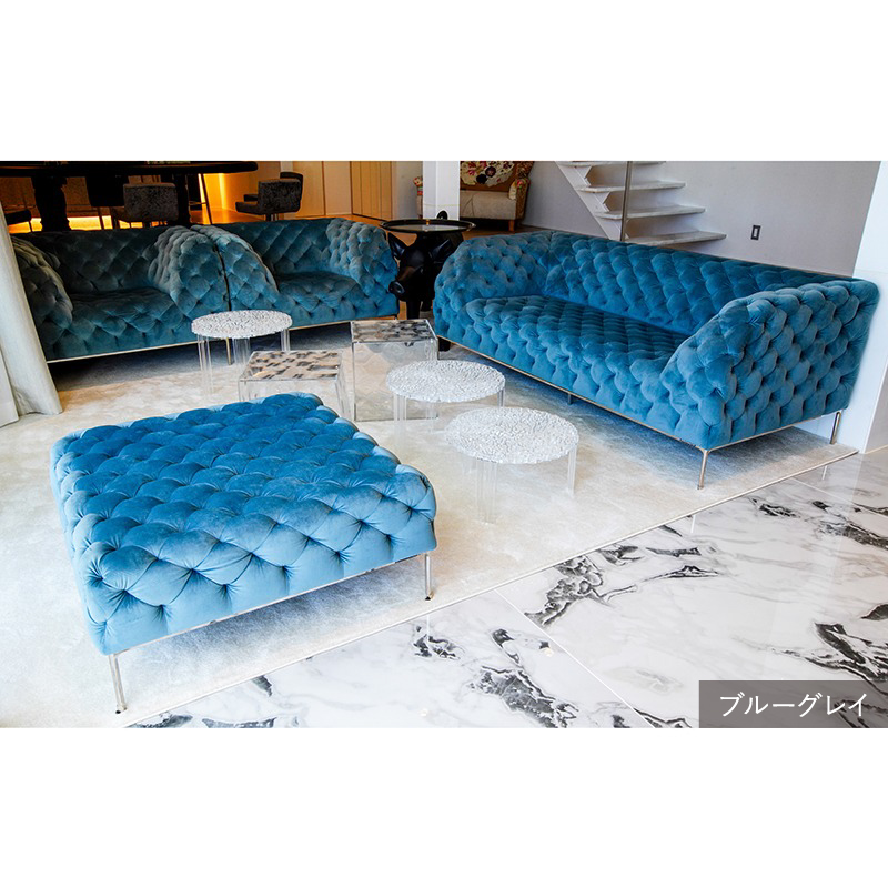 リズミカルにステッチ(タフティング加工)を施したクラシックなチェスターフィールド調のソファを、モダンにアレンジしたデザインです。