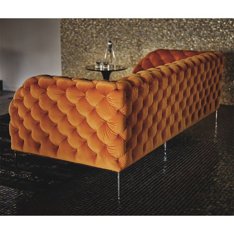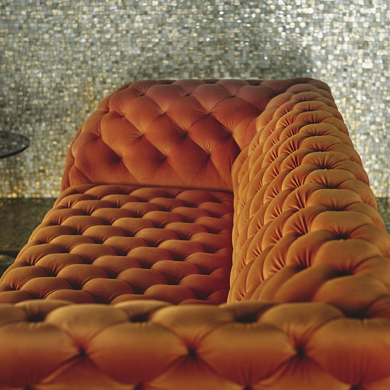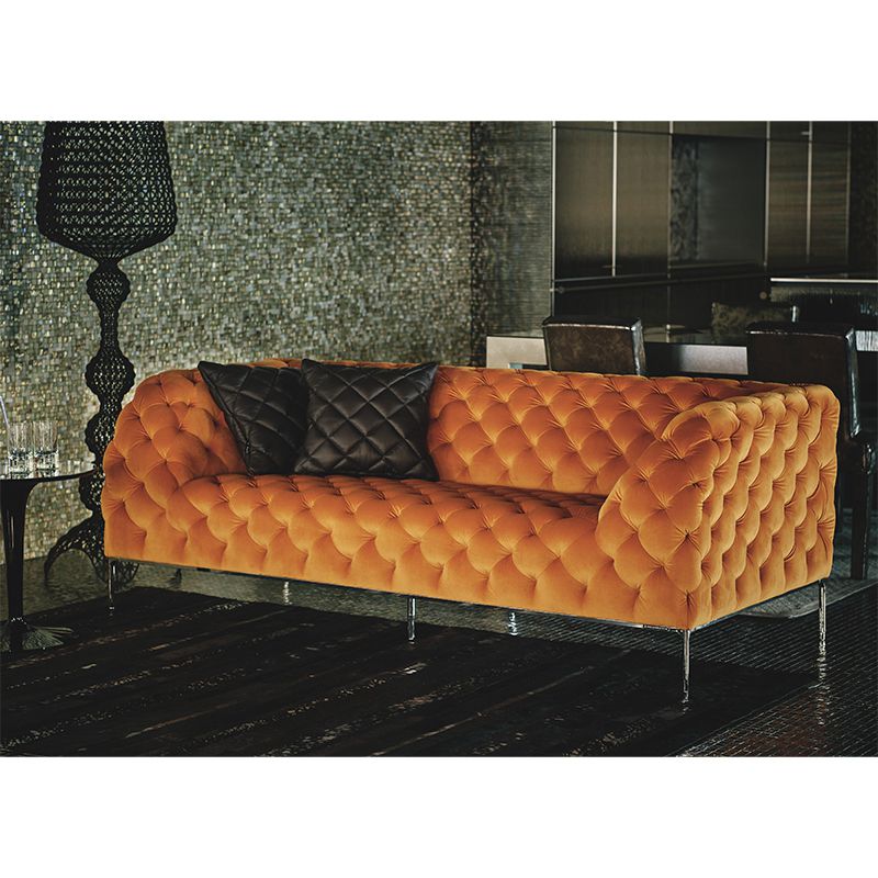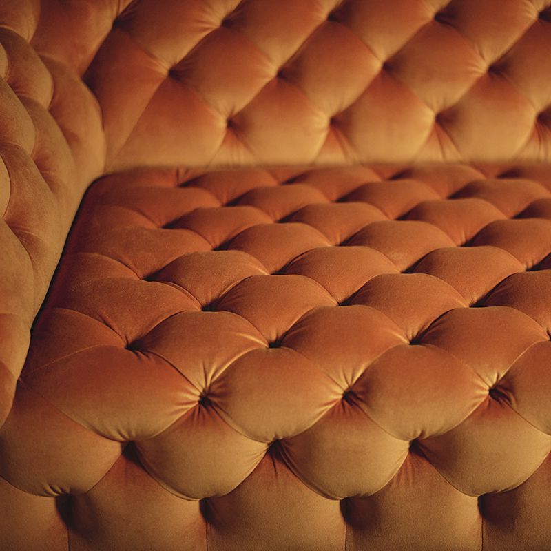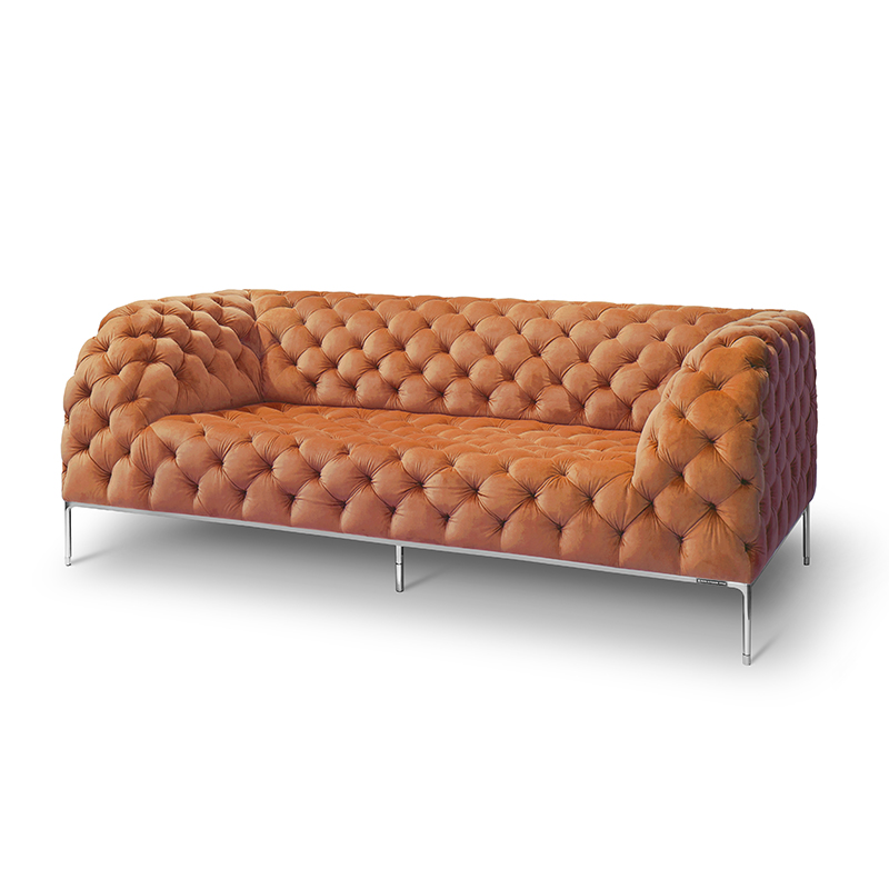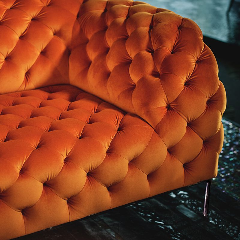 リズミカルにステッチ(タフティング加工)を施したクラシックなチェスターフィールド調のソファを、モダンにアレンジしたデザインです。