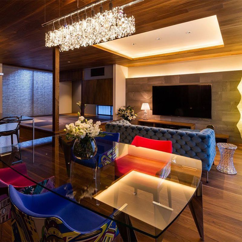 自由なレイアウトで空間をつなぎ、集ソファを中心にひとが集います。