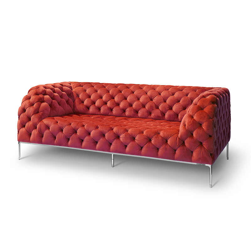リズミカルにステッチ(タフティング加工)を施したクラシックなチェスターフィールド調のソファを、モダンにアレンジしたデザインです。