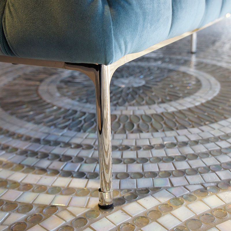 リズミカルなステッチ(タフティング加工)を施し、隆起した表面は、ベルベットで色の表情を楽しむのに最適です。