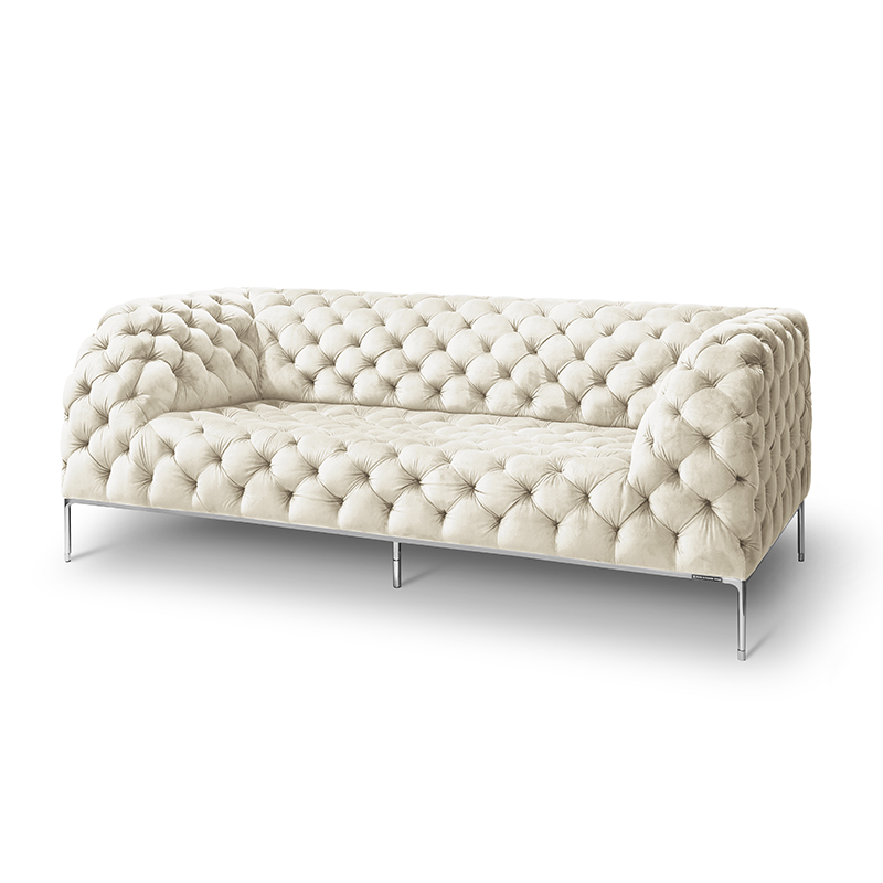 リズミカルにステッチ(タフティング加工)を施したクラシックなチェスターフィールド調のソファを、モダンにアレンジしたデザインです。