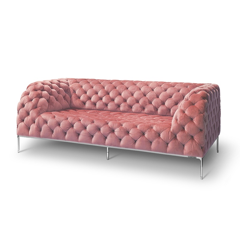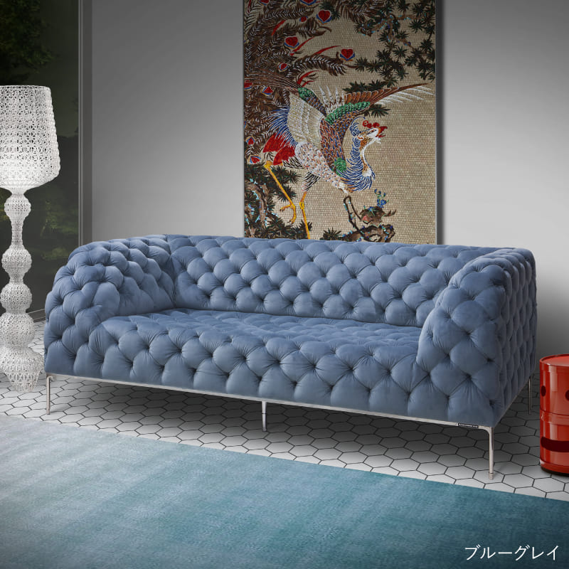 リズミカルにステッチ(タフティング加工)を施したクラシックなチェスターフィールド調のソファを、モダンにアレンジしたデザインです。
