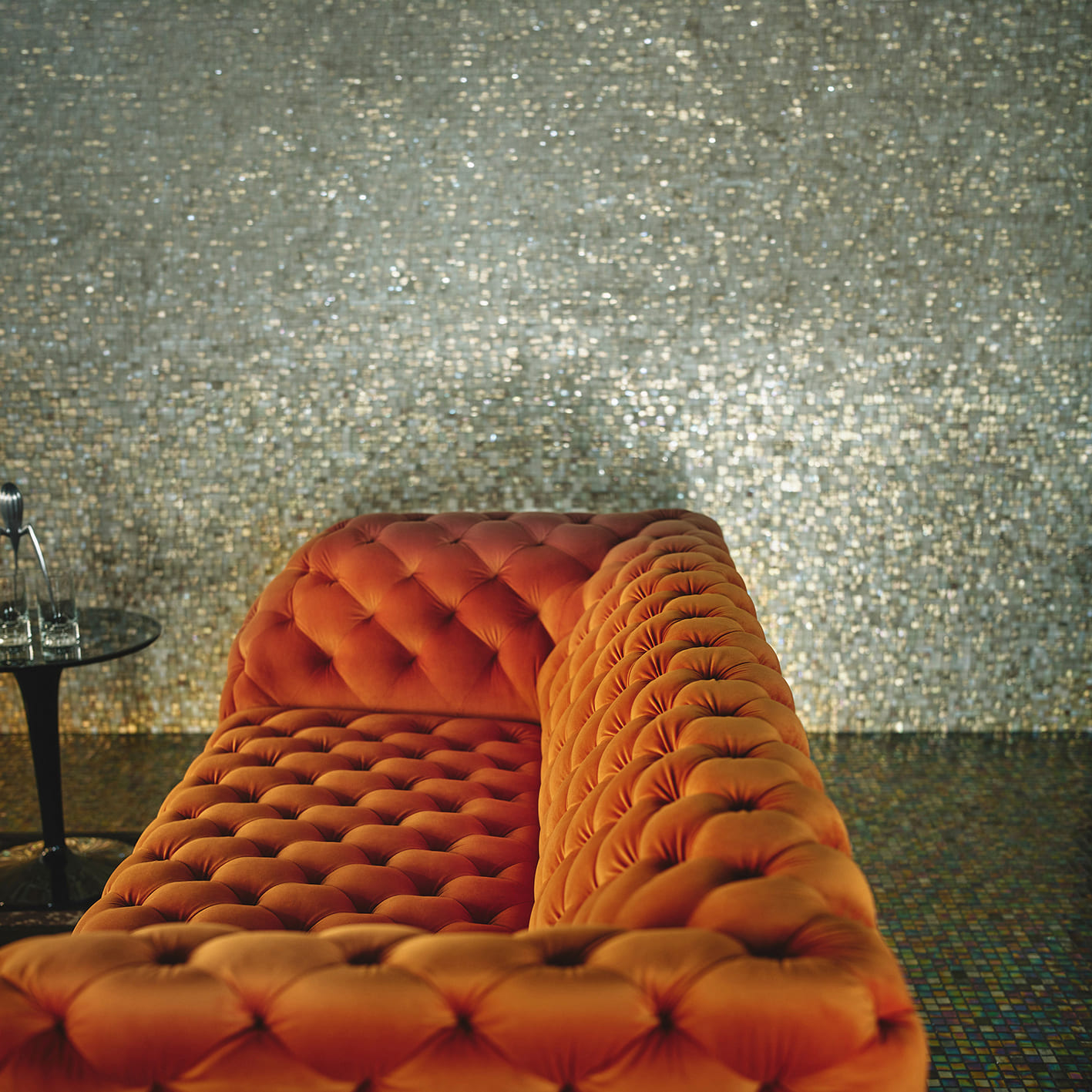 リズミカルなステッチ(タフティング加工)を施し、隆起した表面は、ベルベットで色の表情を楽しむのに最適です。
