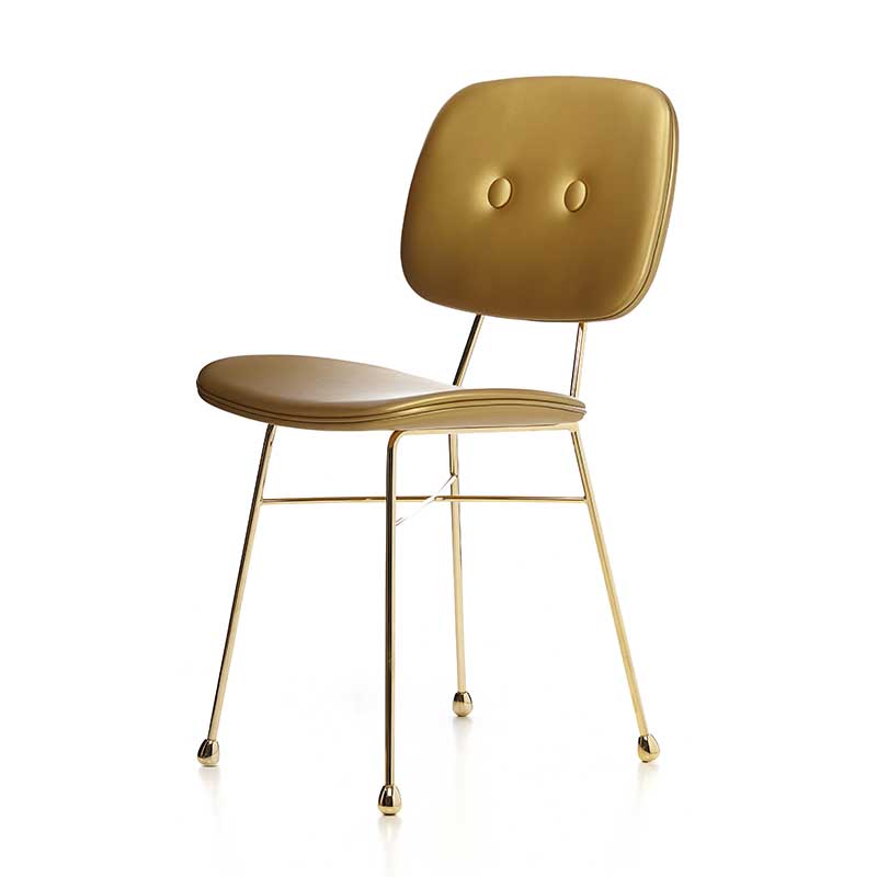レトロルックなスクールチェアが、魔法によって黄金の蜜の色に変身しました。それはまるで、退屈な授業中に窓の外を眺めながら、ぼんやり空想していたファンタジーから飛び出てきたようなカラーリング。