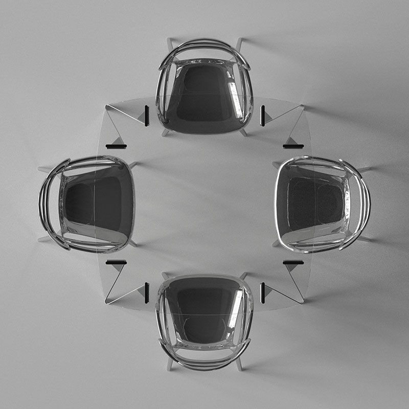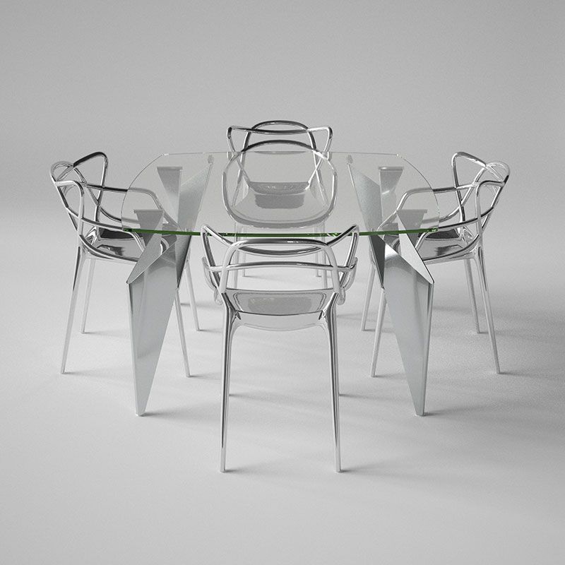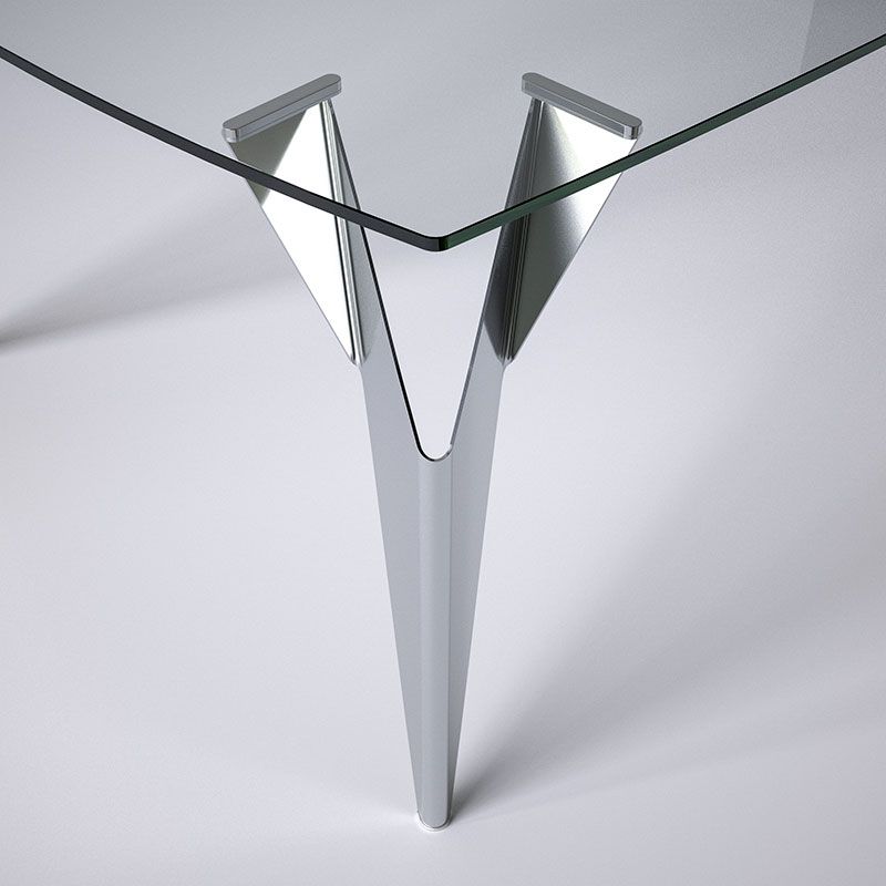 一見、多角的・多面的で複雑に見えるステンレスの脚部は、実際にはとてもシンプルなつくり。一枚の紙を折ることで、さまざまな姿に形を変え、同時に構造的な強度を保つことができるように変化する折り紙をヒントにデザインされています。