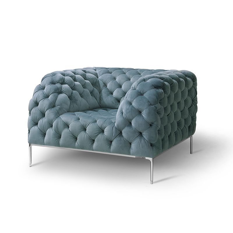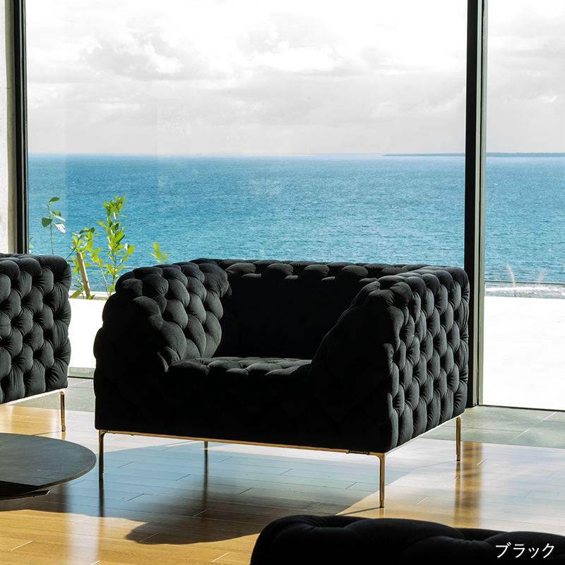 リズミカルにステッチ(タフティング加工)を施したクラシックなチェスターフィールド調のソファを、モダンにアレンジしたデザインです。
