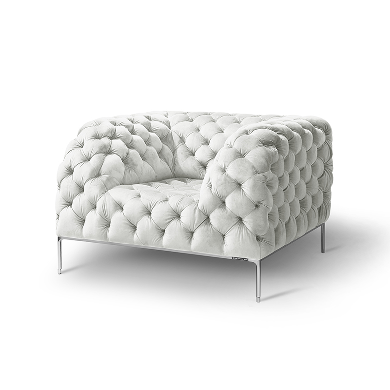 リズミカルにステッチ(タフティング加工)を施したクラシックなチェスターフィールド調のソファを、モダンにアレンジしたデザインです。