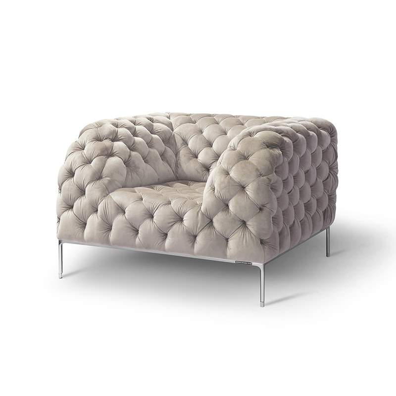 リズミカルにステッチ(タフティング加工)を施したクラシックなチェスターフィールド調のソファを、モダンにアレンジしたデザインです。